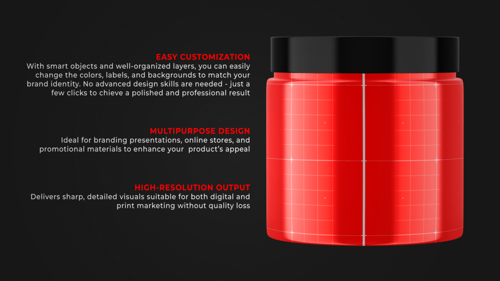 Enhance your designs with this high-quality supplement jar mockup, featuring three realistic angles. Perfect for showcasing nutrition, fitness, or pharmaceutical branding. Easy-to-edit PSD files with smart objects for quick customization.